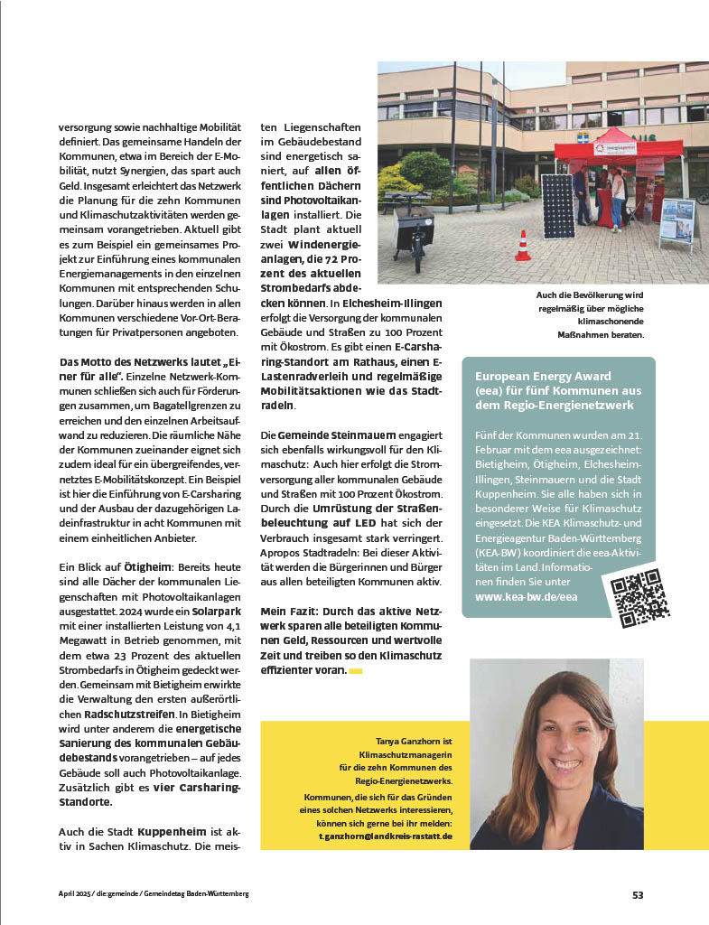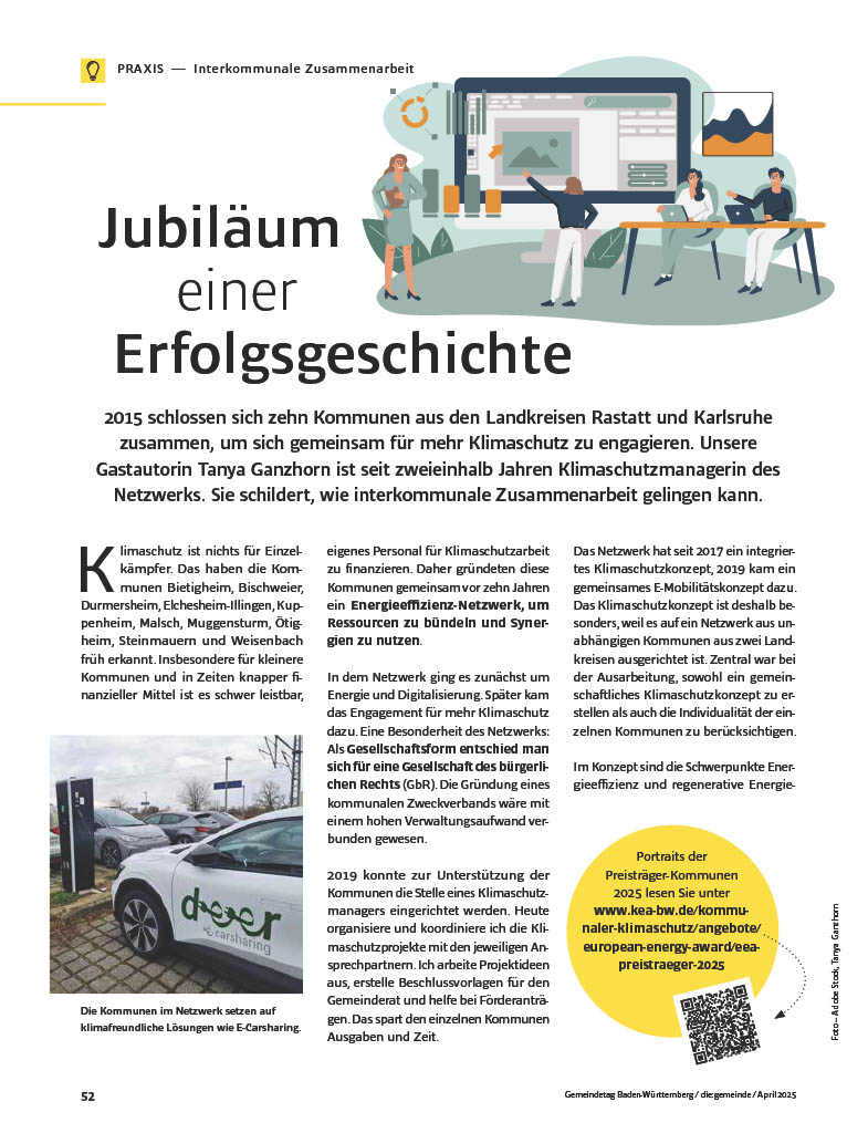 Passend zum 10-Jährigen Jubiläum wird in der Aprilausgabe der Zeitschrift die:gemeinde in ganz Baden-Württemberg vom RegioENERGIE-Netzwerk berichtet.